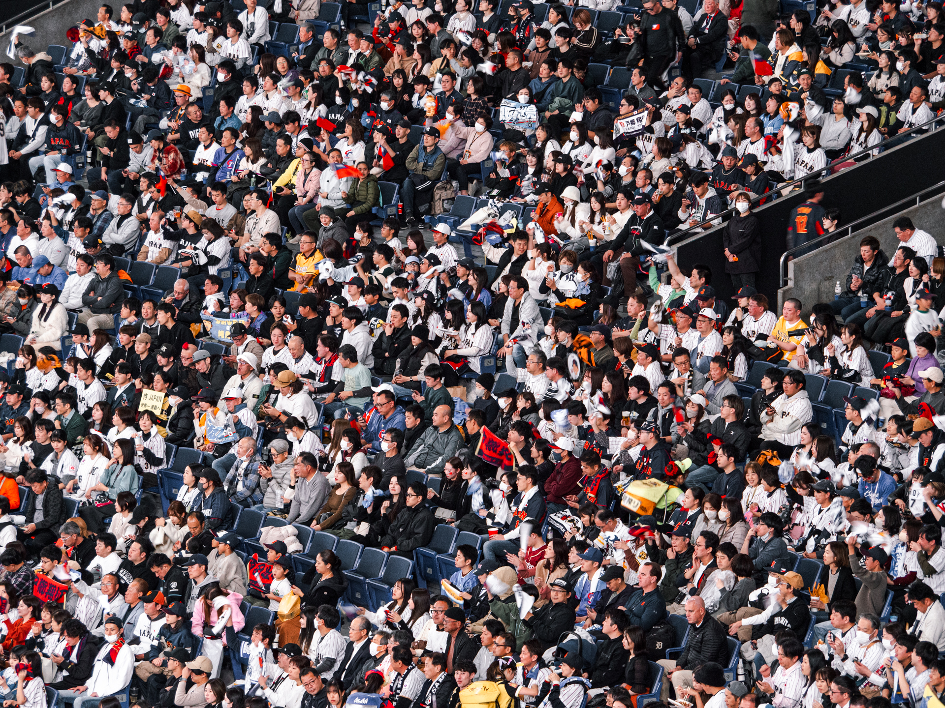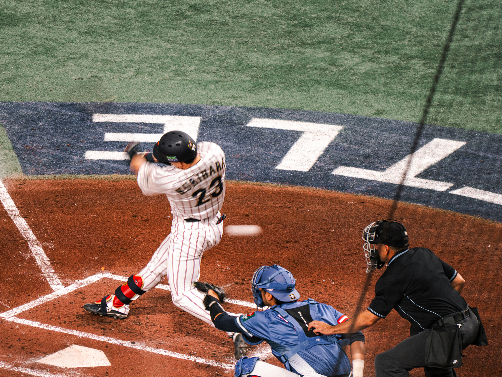 ということで、ご招待いただいた、侍ジャパンの東京ドームでの試合を、かなり上段のお部屋から撮影してみた。VS台湾の決勝戦である。